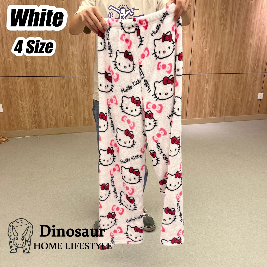 ?? ReadyStock - 2024 New Coral Fleece Hello Kitty Pajama Pants Women's Warm Plush Cartoon Casual Home Pants Student /Home pants / Pajamas pants