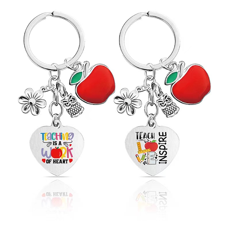 【19 Styles】?‍?Hot Teachers Day Gift Key Chain Apple Key Ring Thanksgiving Teacher's Day Teacher Gift Love Metal Key Chain Handmade DIY Jewelry