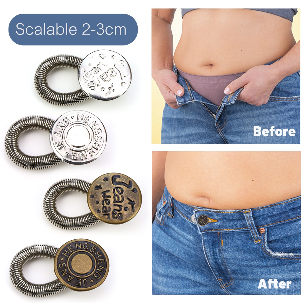 1PC Vintage Adjustable Metal Button Extender Waist Extenders Buttons Waistband Expander Free Sewing Retractable Buckles Metal Spring Skirt Pant Jeans Accessories
