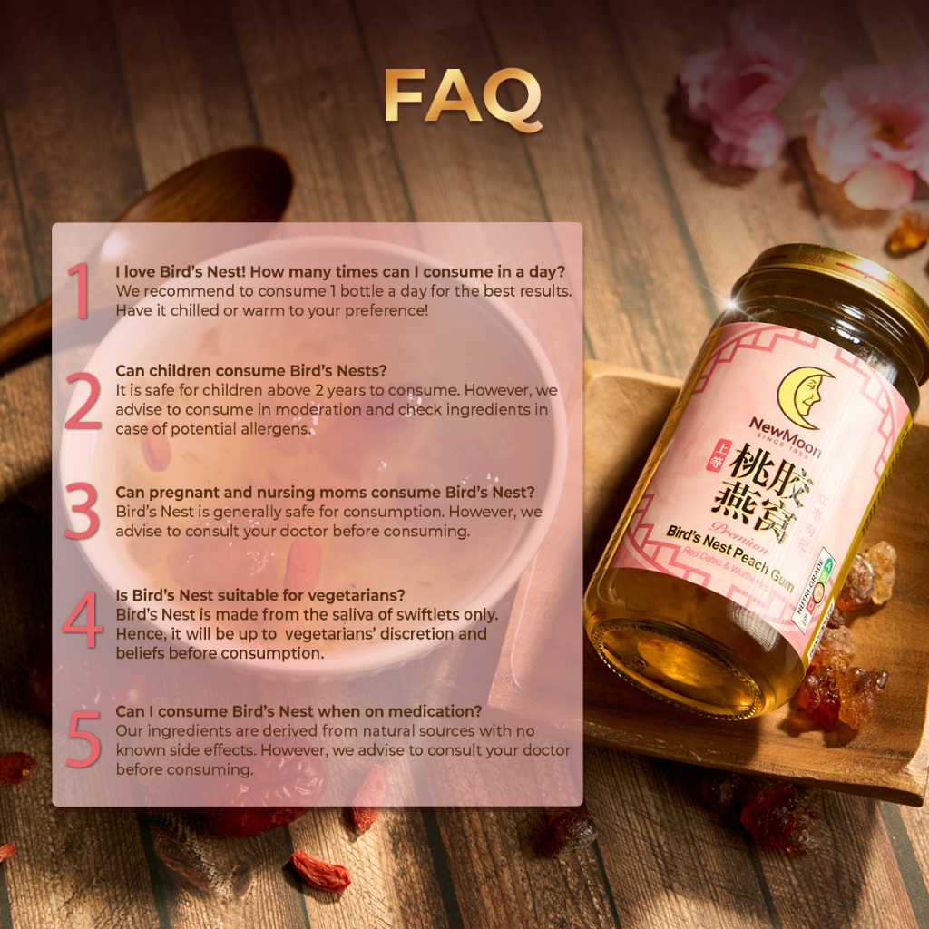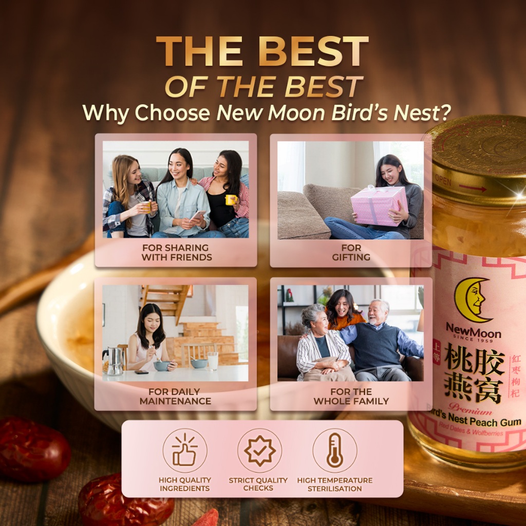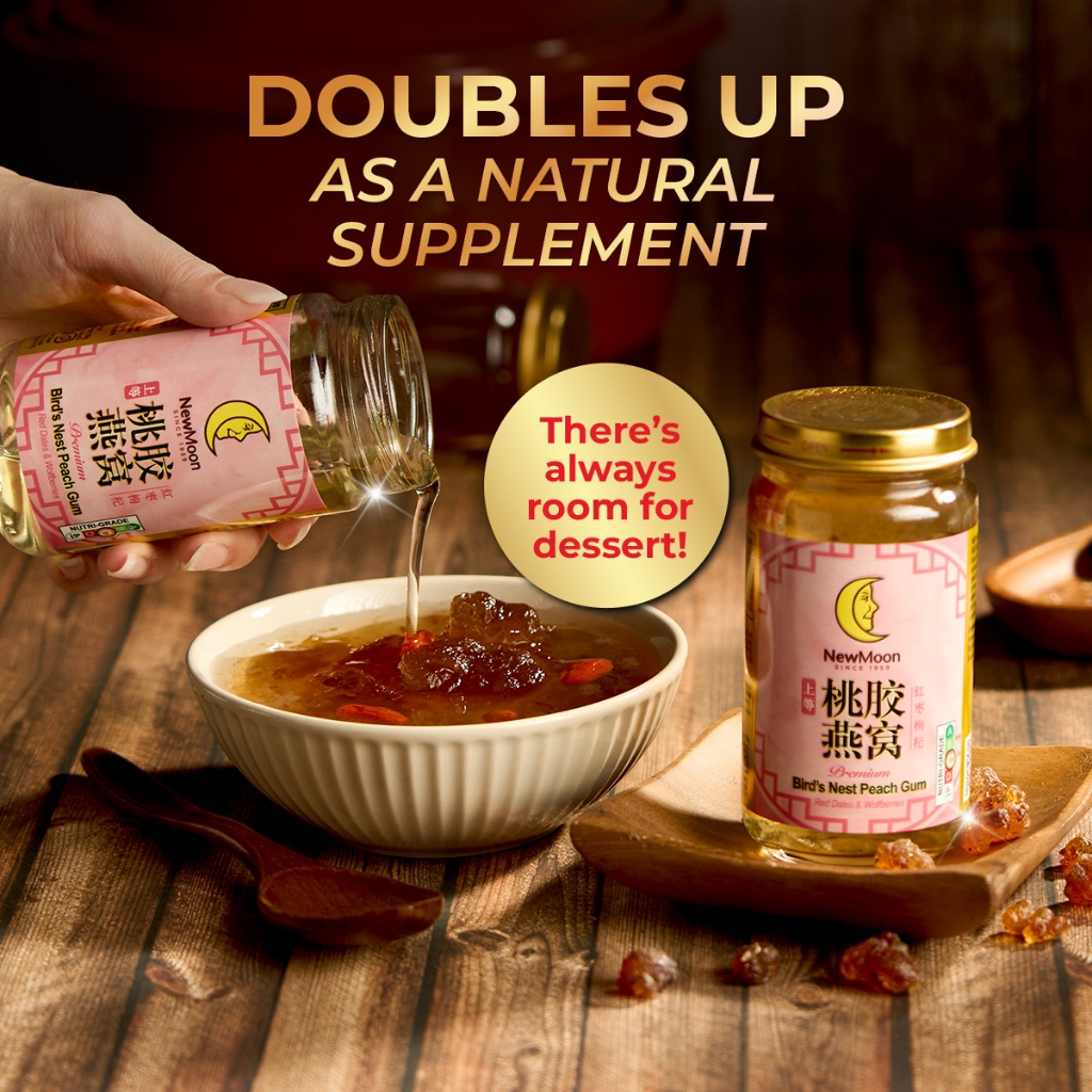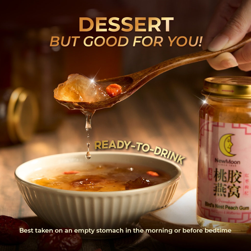 [2 Cartons Deal] New Moon Premium Bird's Nest Peach Gum with Red Dates & Wolfberries 150g x 15 bottles