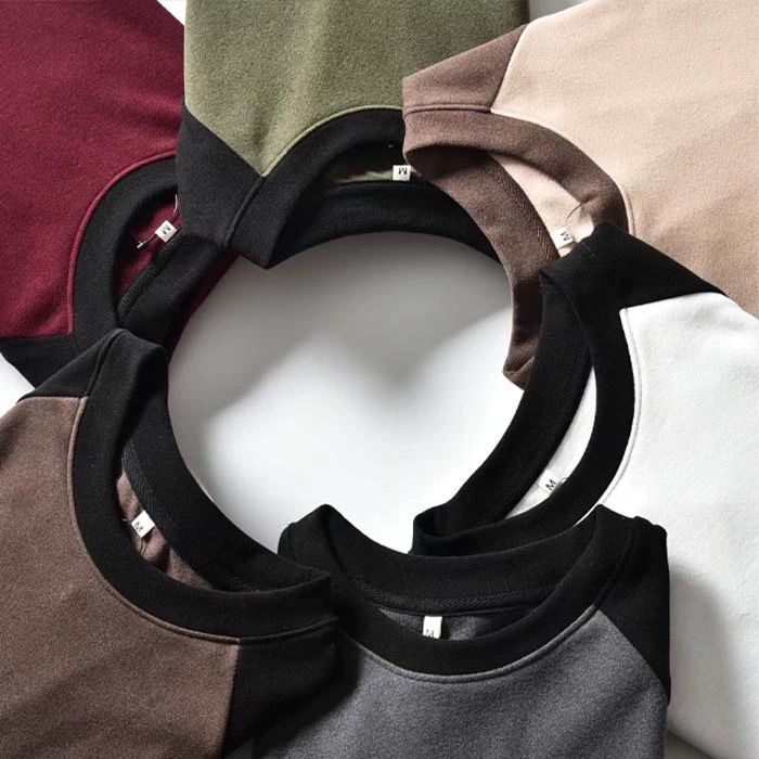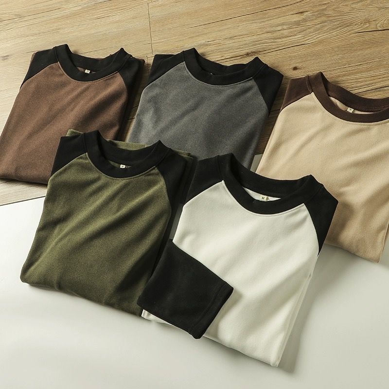 2023 new Double-Sided German Velvet Bottoming Shirt Men Autumn Winter Style Fashionable All-Match Raglan Sleeve Sweatshirt Men Casual Contrast