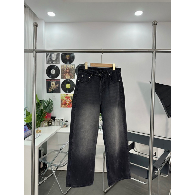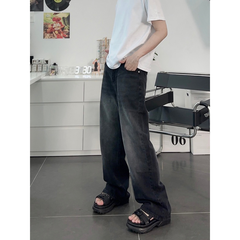 Baggy JEANS Wide Tube Smoke Gray Stripe 1007 FORM UNISEX (Real Photo)