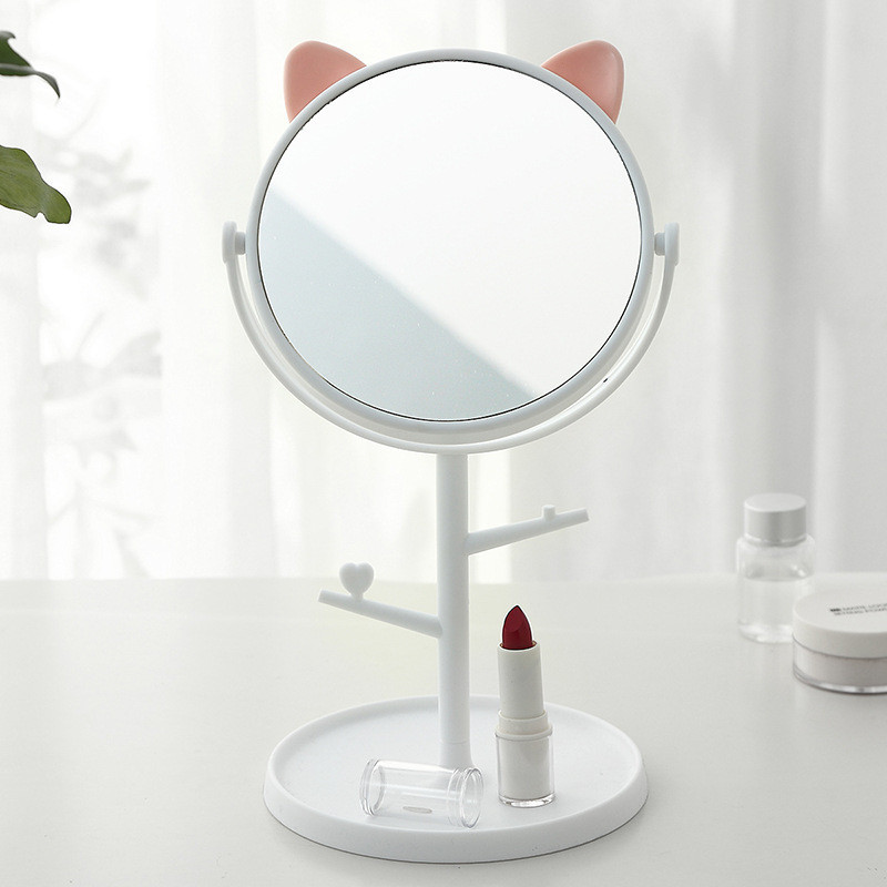 Beauty? Cat Ear Long Stand Kitty Makeup Mirror Rotatable Swivel Desk Mirror Beauty Makeup Mirror Mirror
