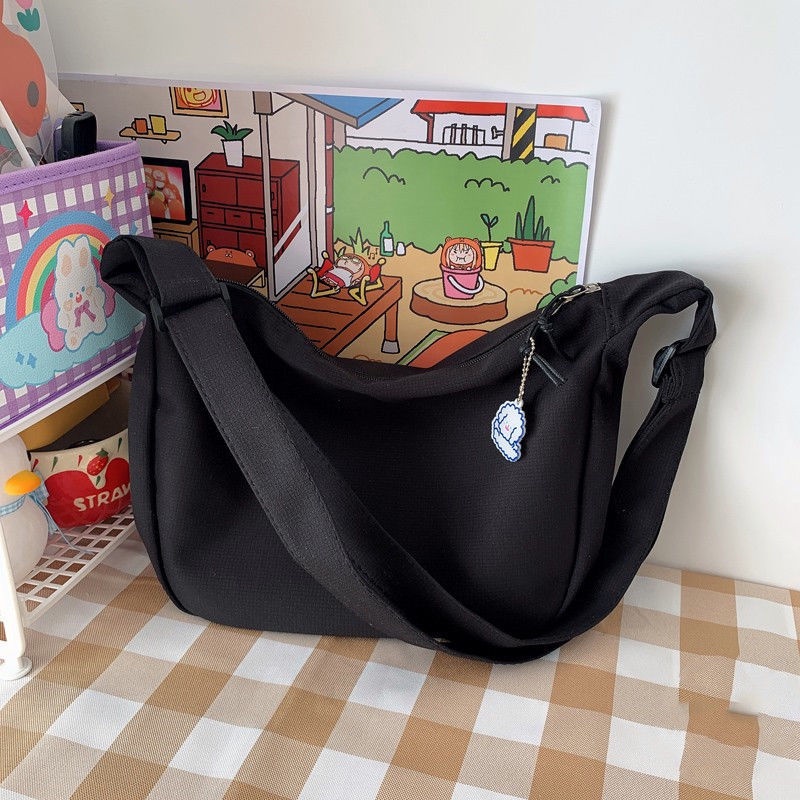 Crossbody Bag Student ins Japanese Shoulder Simple Waffle Casual Art Messenger Solid Color Dumpling YKD YK