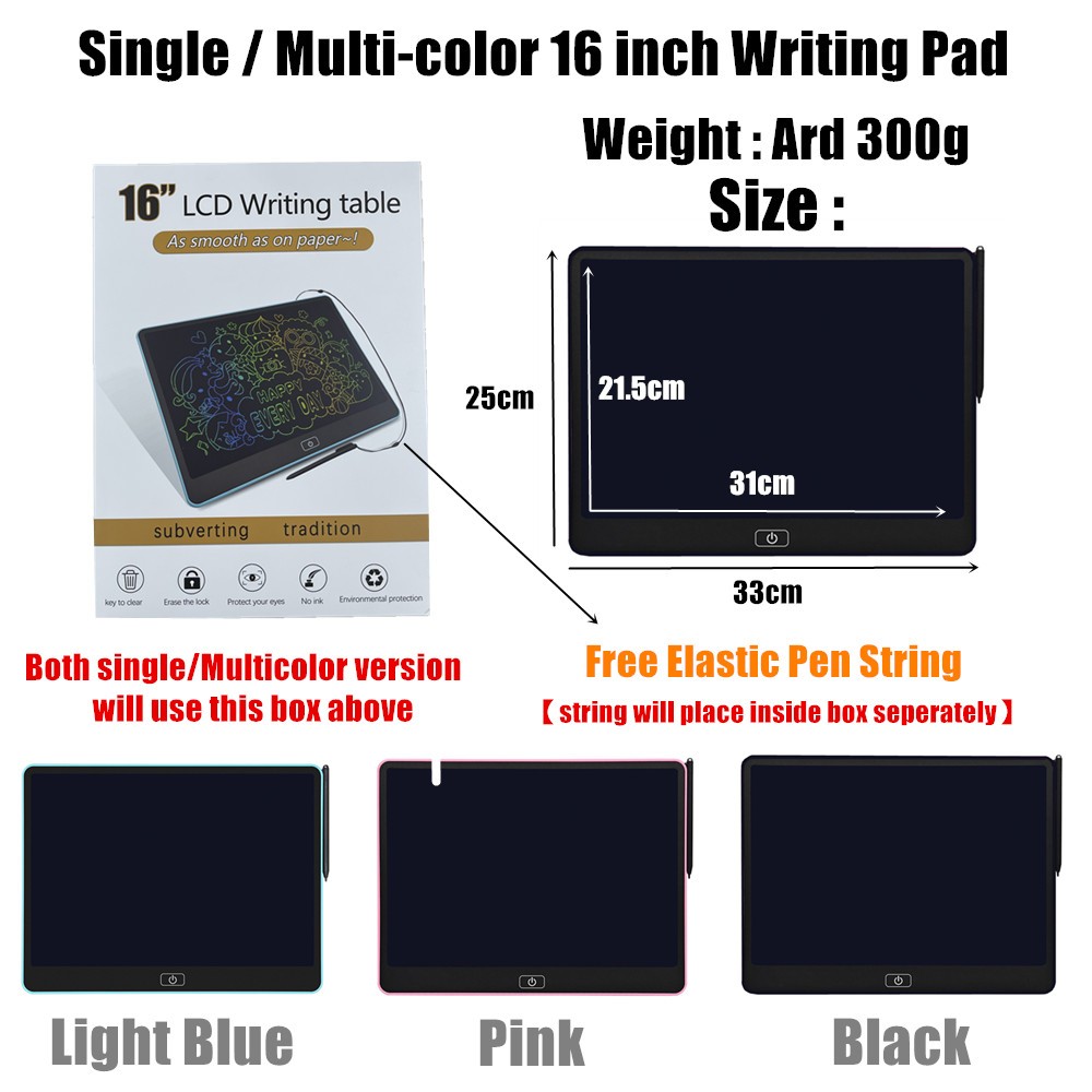 Best Feature(s):erasable Value For Money:yes Performance:able to write on smoothly Good for my kid who likes to doodle many things. Can draw and erase as you like it. Portable to bring for travelling. Display is multicoloured so makes the drawings prettier. Good buy and thanks for the extra battery!