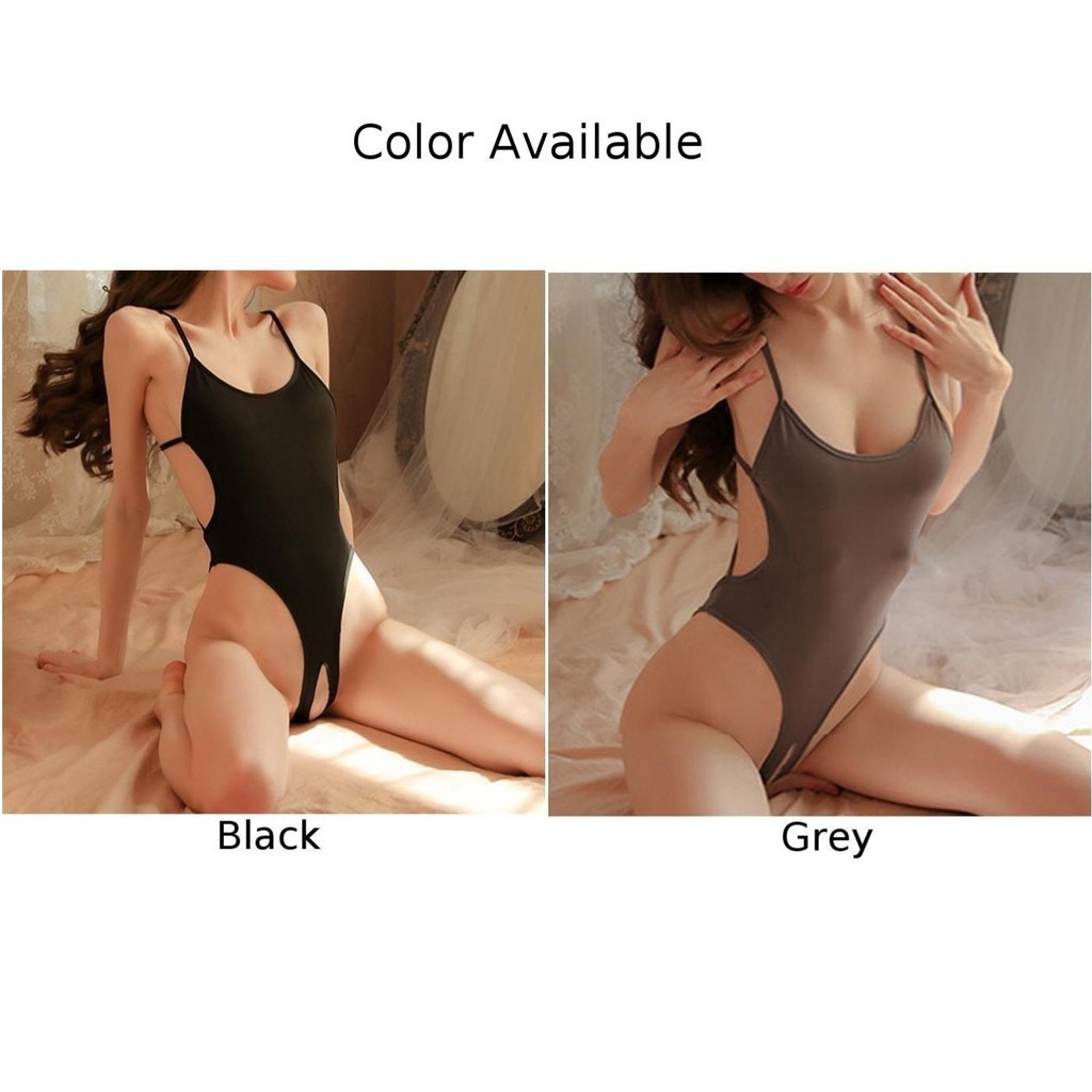 【HEPA】 Women Sexy Sheer Lingerie See Through Crotchless High Cut Thong Bodysuit