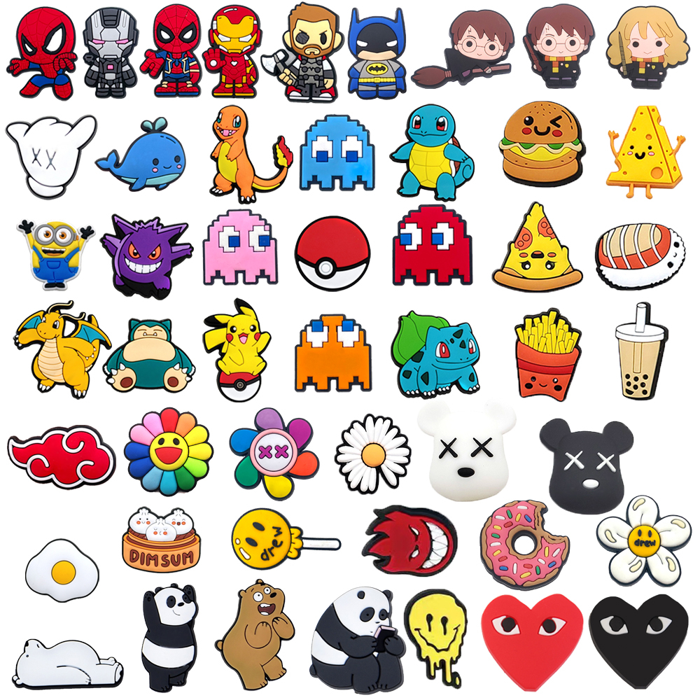 Hot sell Aceessories CROC JIBZ DIY Fashion Shoe Charms cartoon anime slippers cute shoes 1pcs FashionPin buckle decoration kids Gifts