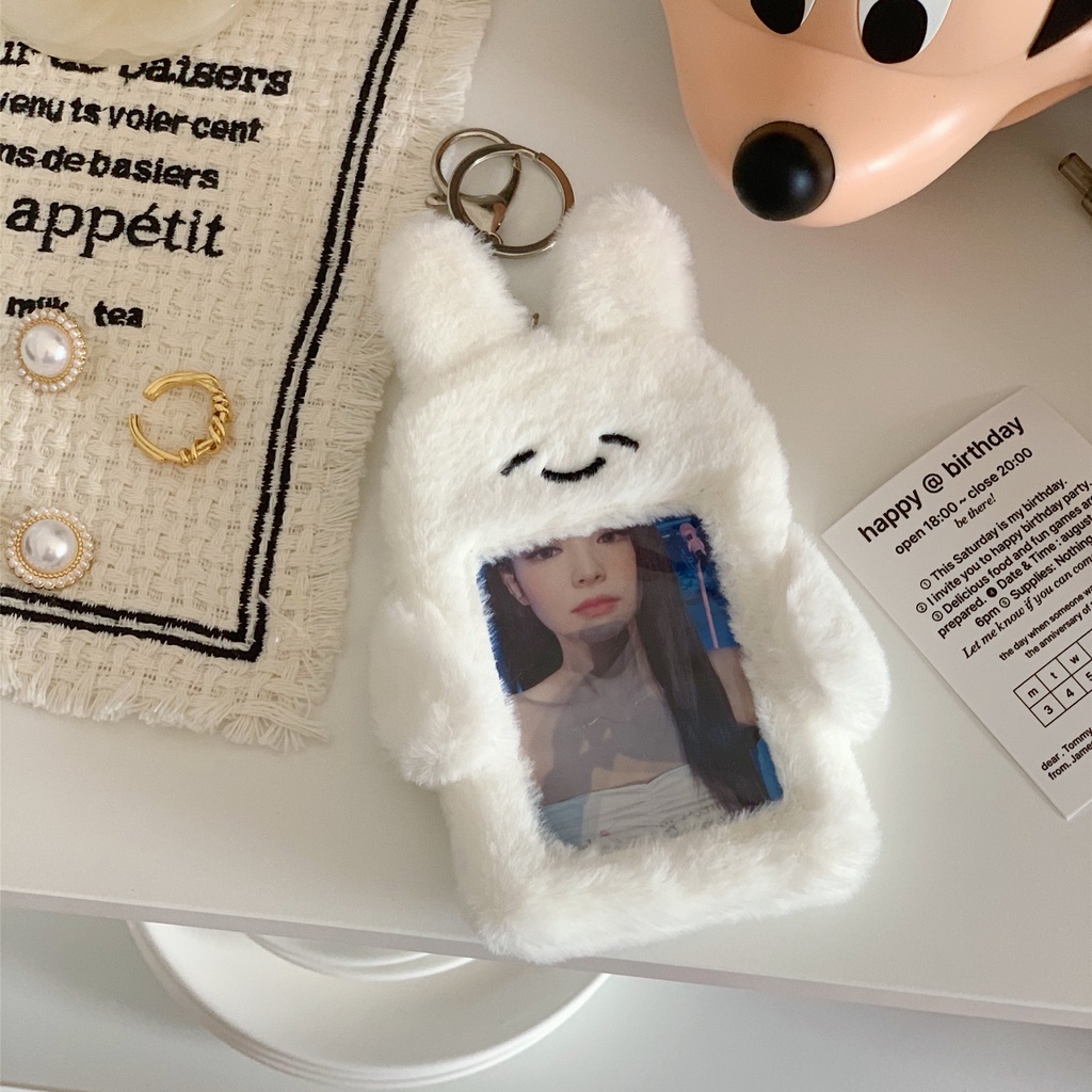 Colour:white and fluffy Appearance:cute Material Quality:soft super cute soft and fluffy. perfect for photocards, but make sure to use a toploader because the pc might be damaged without one