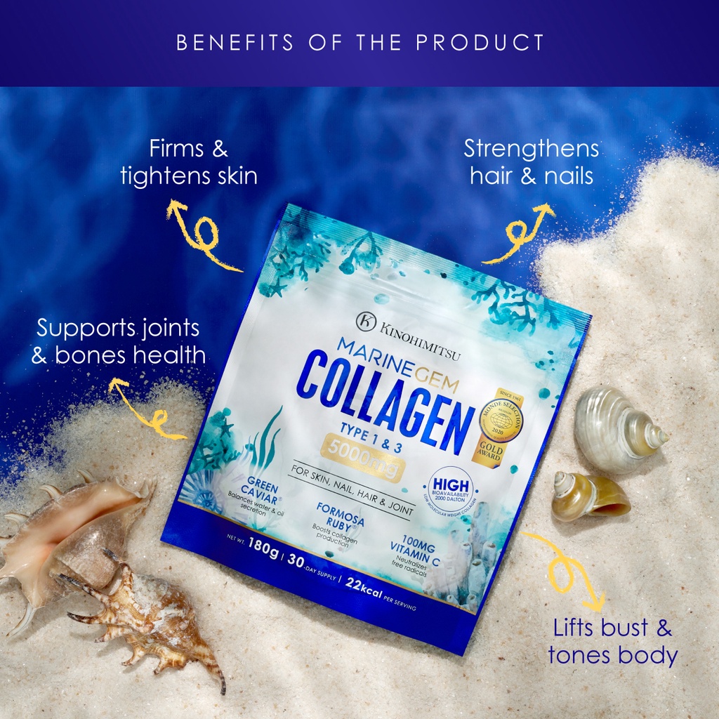 Kinohimitsu MarineGem Collagen 5000mg Beauty & Health Supplement 180g - Skin Firming & Brightening
