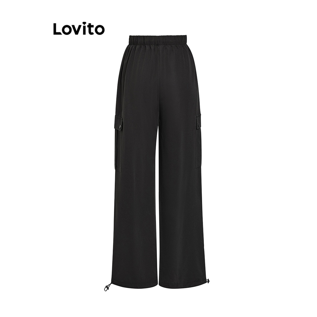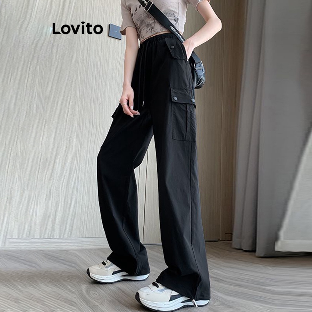 Lovito Casual Plain Pocket Lace Up Pants for Women L68ED106 (Pink/Black)