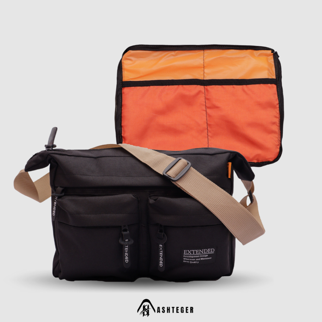 Material Quality:sturdy Colour:black Abit mini size, seems quite compact with all zippers. It has about 4 compartments as shown in the pictures. Water bottle pouch is really small, it’s about my palm size. Bag is definitely meant for putting small stuff. I like how rectangular the bag is. Things don’t get lost in the depth of the bag. Will definitely consider to rebuy again. Thanks!