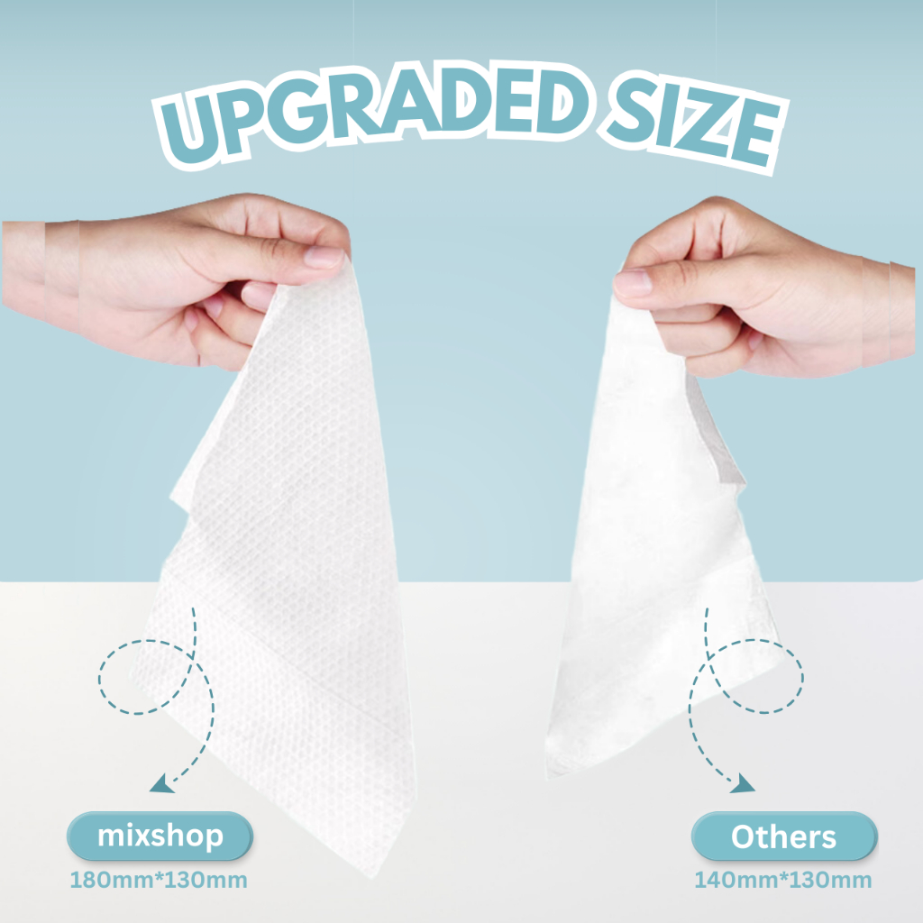 Repeat purchase. Love the quality. Thick, soft and good size. Not overly big so there is no wastage. No fragrance and just the right amount of moisture. Suitable for babies and pets. Value fo money and fast delivery. Highly recommended.