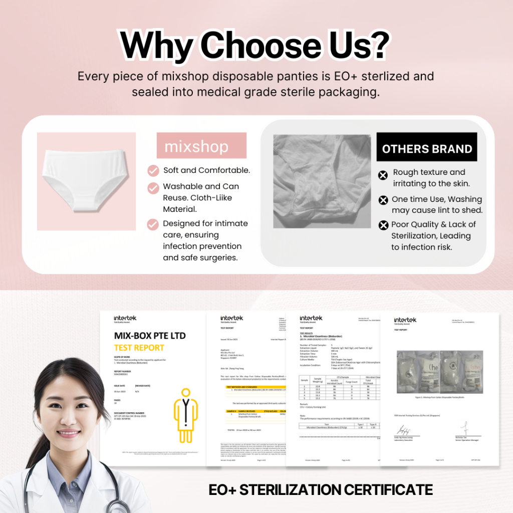mixshop Pure Cotton Disposable Panties, lady's disposable underware [EO+ Sterilization]