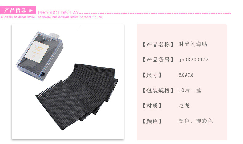Material Quality:Good! Fit:Good! Colour:Standard black Never bought a box before but I keep misplacing my old ones so decided to buy. This helps to keep my fringe and flyaway hair out of my face easily and leaves no mark on my hair.