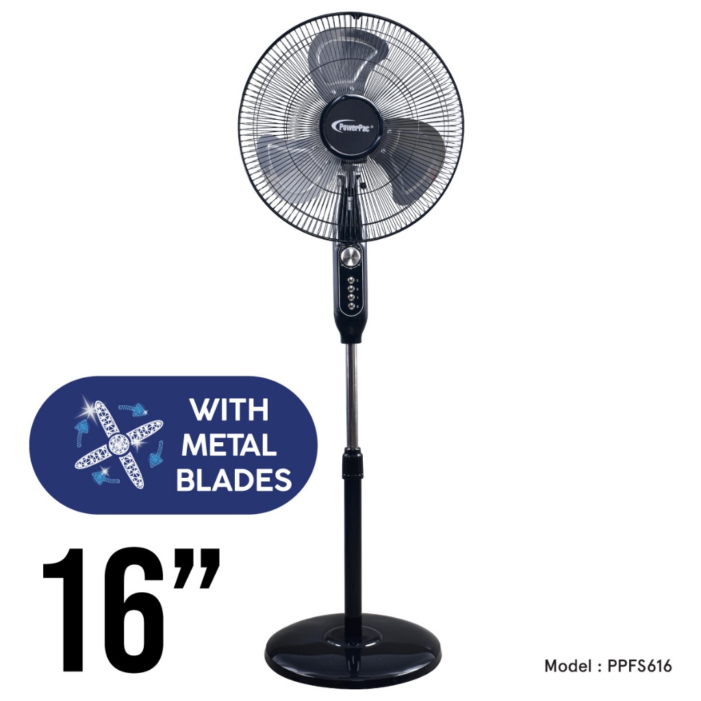 Powerpac 16 inch electric stand fan with remote control, easy to install, a breeze to use, wind is strong, 2nd purchase, no regrets, value for money