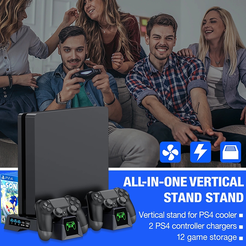 (SG 24H Delivery)PS4 Dual Charger LED Vertical Cooling Stand For PS4/PS4 Pro/PS4 Slim/Sony Playstation 4 Console 3 Mode Cooling Fan Cooler