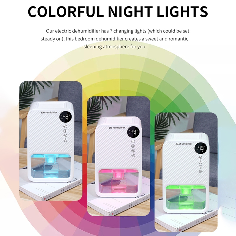 SG Stock Home Wired Dehumidifier Air Purifier With Night Light Quiet Household Cycle Dehumidifier 1100mL Auto shutoff 除湿机