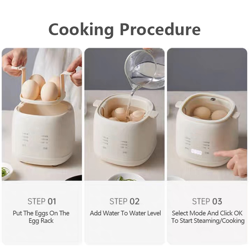 【SG Stock】Egg Boiler Household Small Hard Boiled Egg Maker Automatic Power off 6 Modes Breakfast Cooker 3 Pin Plug 煮蛋器