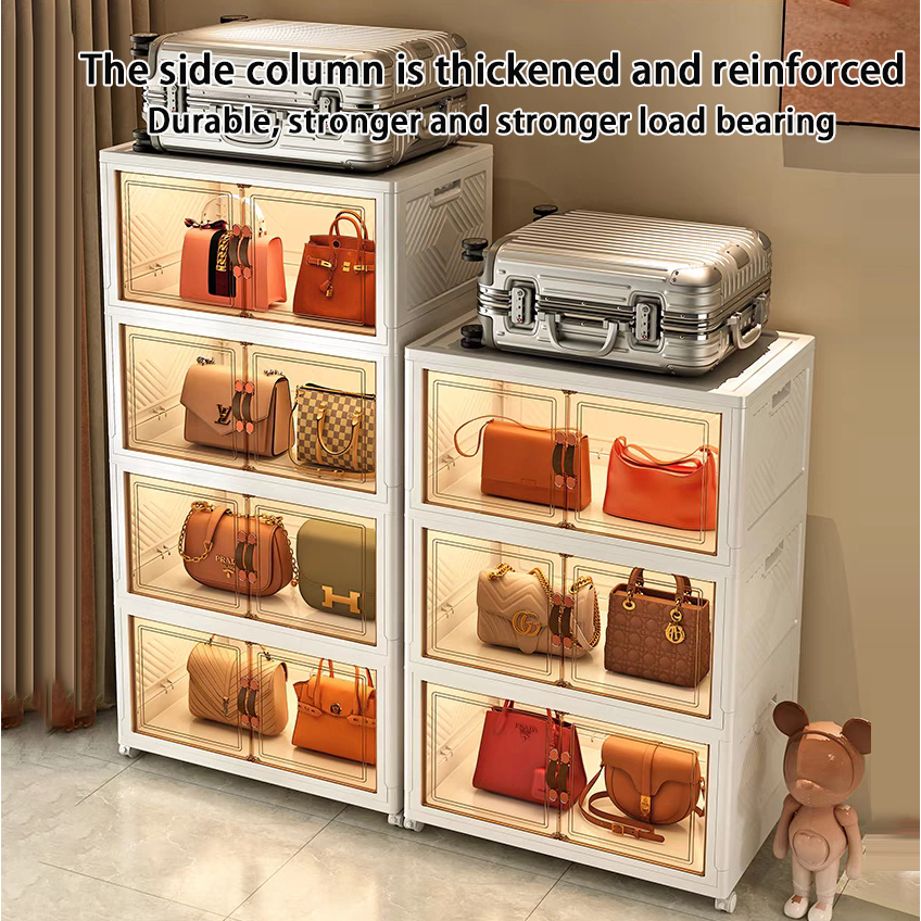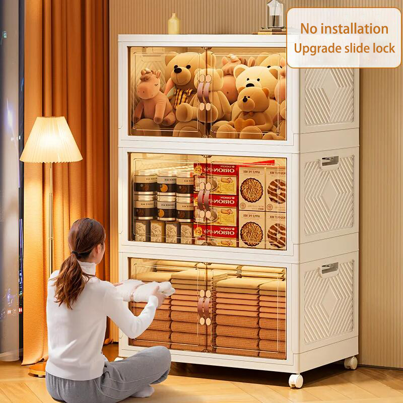 【SG Stock】Folding Storage Box Cupboards Cabinets Transparent Double Door Foldable Home Clothes Snacks Storage Cabinet