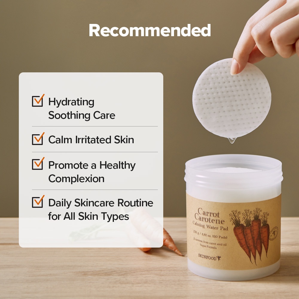 [SKINFOOD Official] Carrot Carotene Calming Water Pad 60ea / Redness Relief Soothing / Cooling over-heated skin / Natural Ingredients / Toner Pad