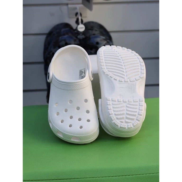 Material Quality:rubber Colour:White Looks legit Comes with crocs packaging Fast delivery but slightly damaged