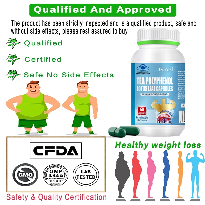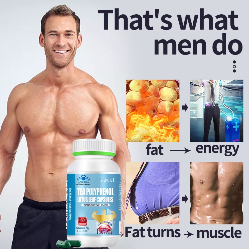 Trorexl 60 Capsules Halal Tea Polyphenols Lotus Leaf Extract-Quick Weight Loss Capsules for Men-Healthy Weight Loss-100% Effective-Burn Fat