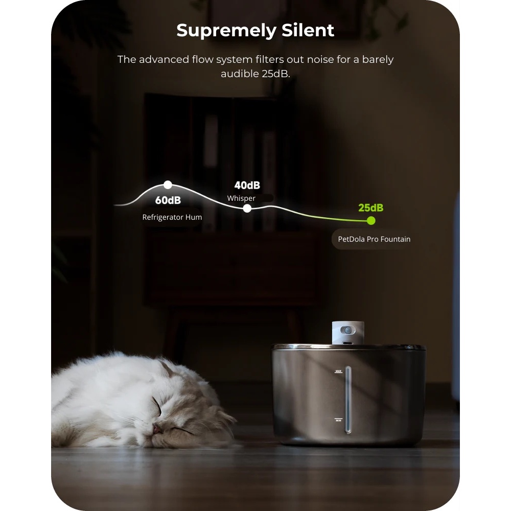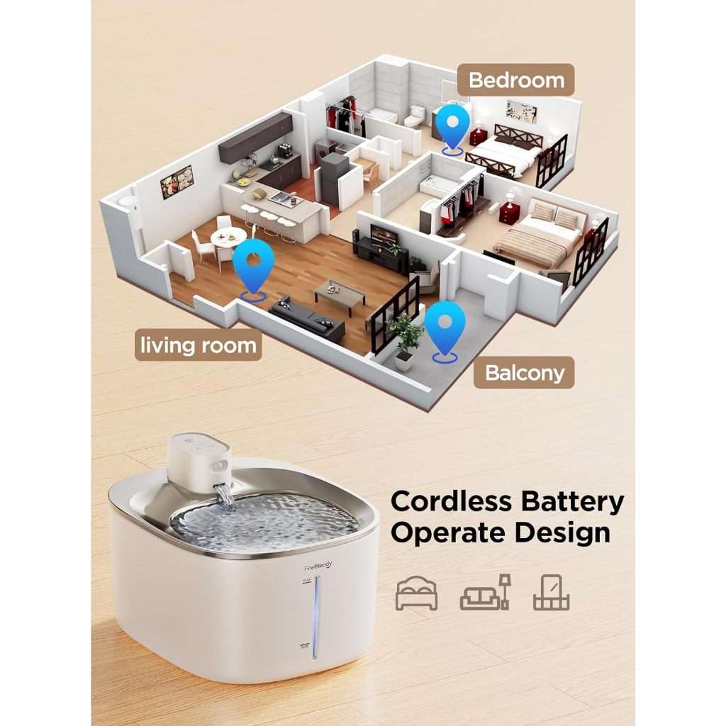 Wireless Cat Stainless Steel Water Fountain 4L Battery Operated with Water Level Window