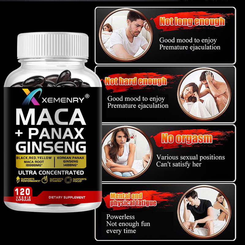 XEMENRY Maca Root Capsules 10,000mg + Korean Ginseng 1,400mg